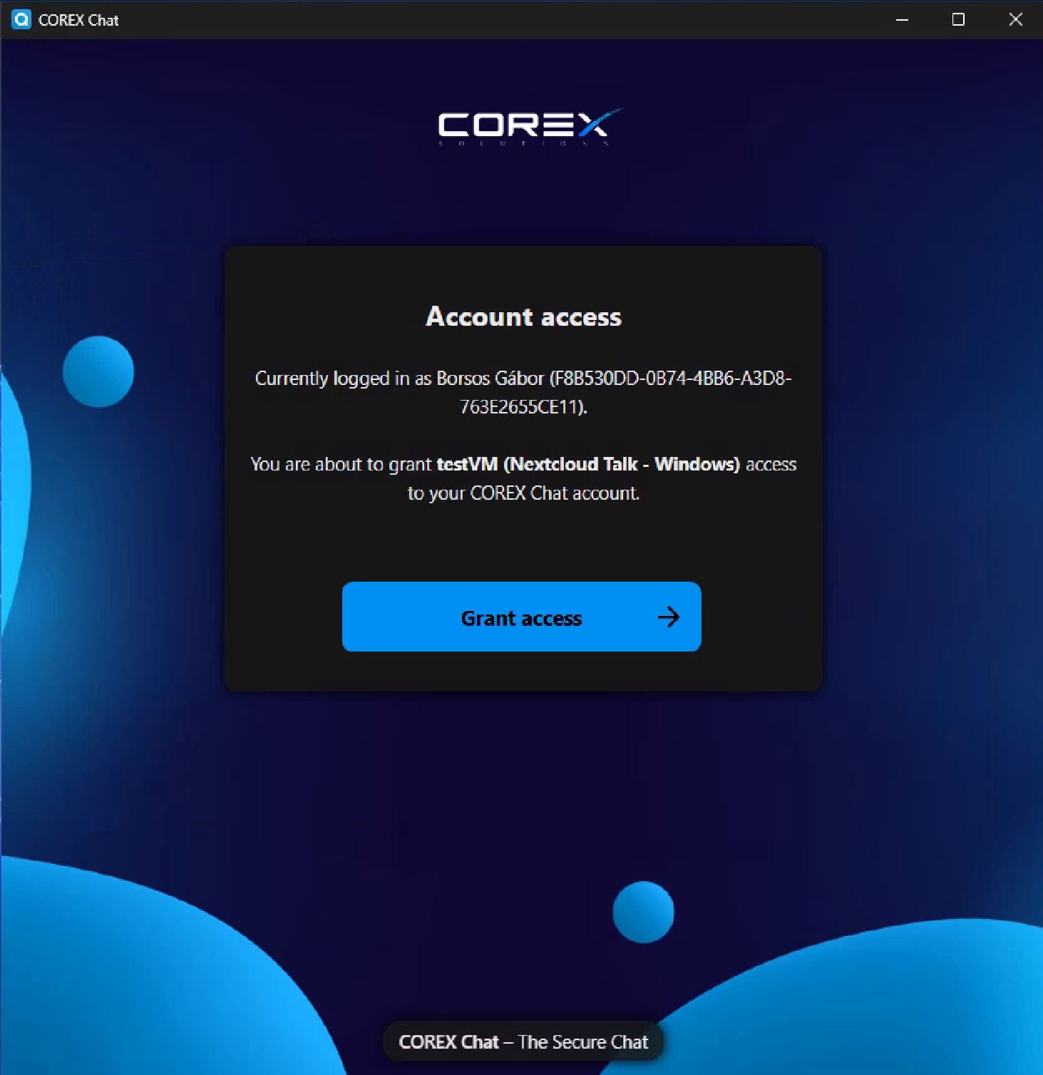 A következő ablakon adjuk meg a hozzáférést a Chat alkalmazásnak, kattintsunk a "Grant access" gombra.